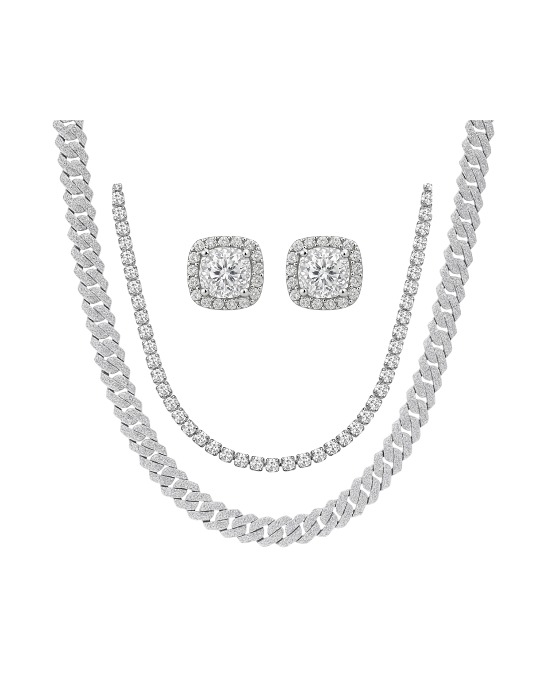 COLLANA TENNIS ACCIAIO INOSSIDABILE + CUBAN CHAIN + ORECCHINI DRYP ACCIAIO INOSSIDABILE