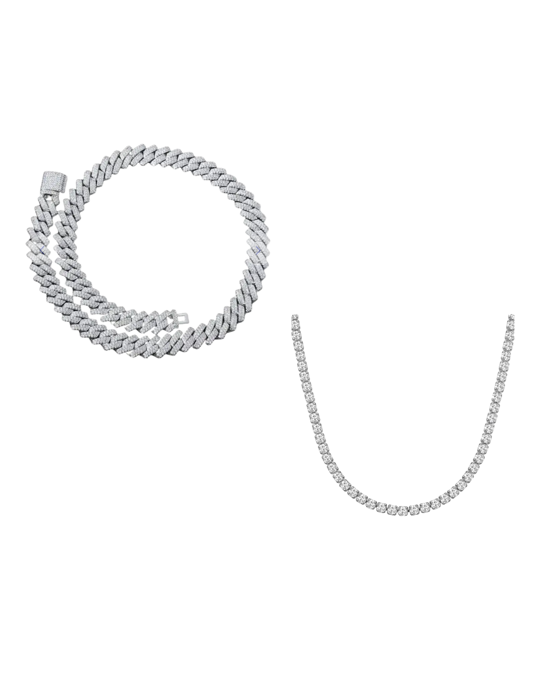 CUBAN CHAIN DRILL + COLLANA TENNIS ACCIAIO INOSSIDABILE