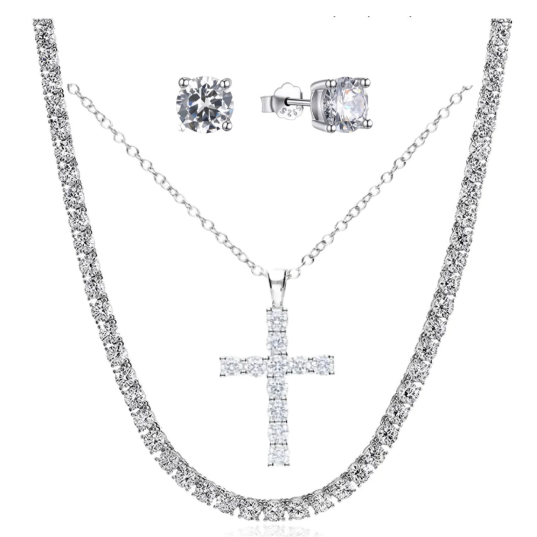 Collana tennis + Orecchini ( argento 925) + Croce (Acciaio inossidabile)